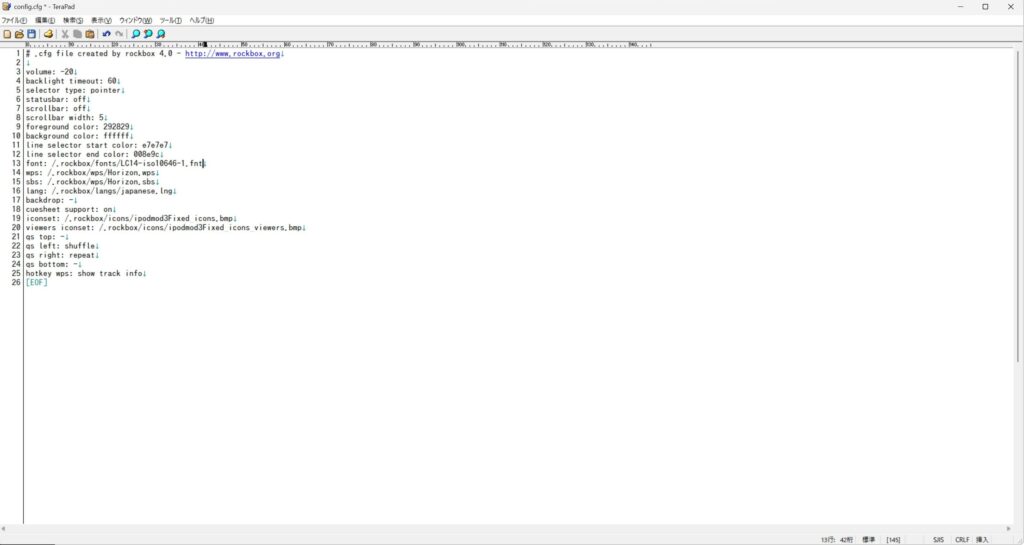 文字化け、日本語化できなかった場合にはconfig.cfgファイルの該当箇所を