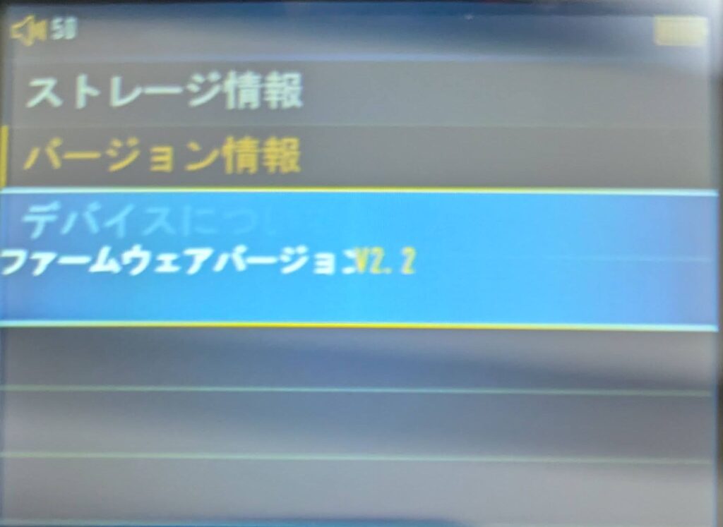 DAPのシステム設定 >> デバイス情報 >> バージョン情報 と開いて現在のファームウェアバージョンを確認します。
