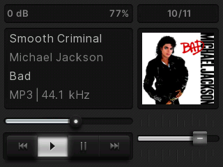 モダンなipod風デザイン。再生中に表示される画面は WPS(While Playing Screen)と呼ばれていますが、こちらはWPSのみ対応しているのでステータススクリーンのテーマは別に用意する必要があります。