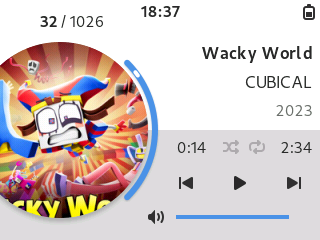 アートワークやステータス画面がサークル状になっているテーマ。 日本語対応フォントのため設定しなくても日本語表示されます。かなりおすすめ。