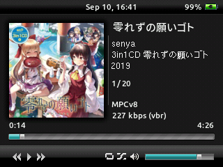 設定画面・ファイル画面などはシンプルですが、Now Playing画面はかなりの情報量。飽きが来ないデザイン。